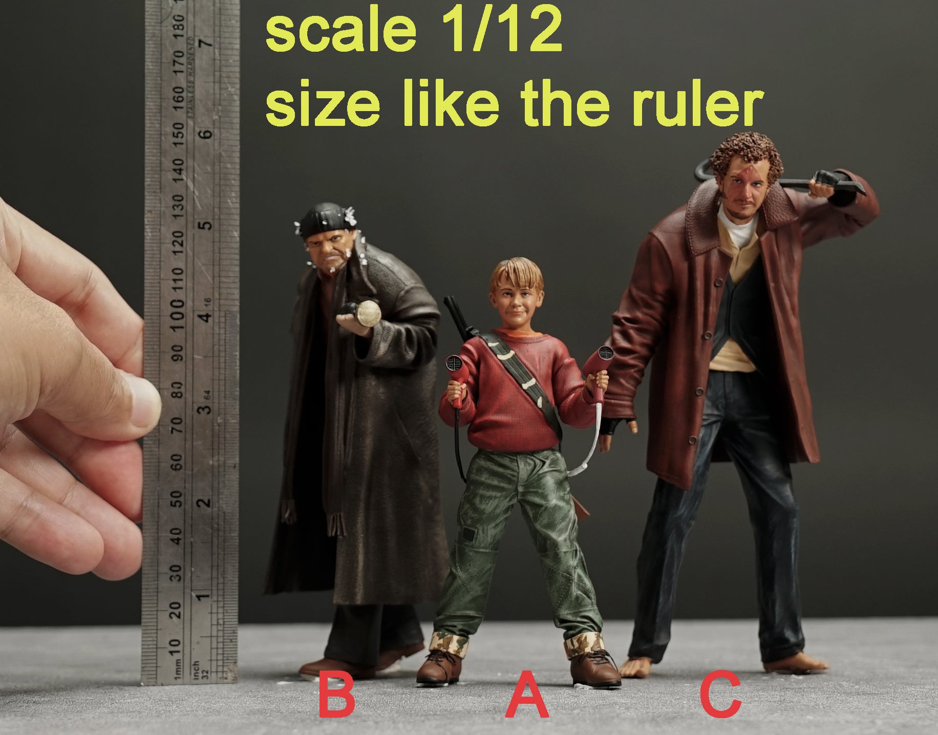 Scale is 1:24, height 7.5 cm (2.95 inches) when he stood up straight (For 1:24 car diecast)