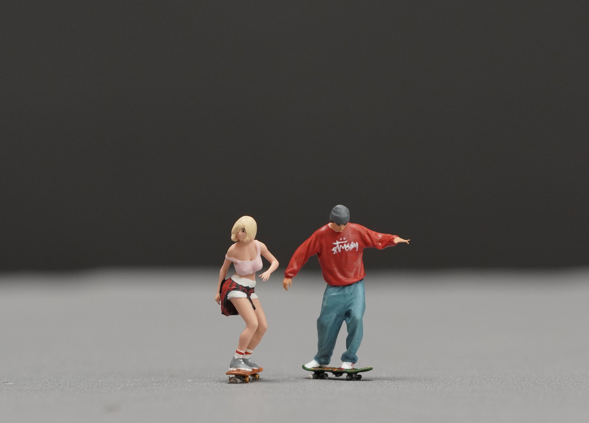 Couple and Skateboarding figurine handpaint high detail 1:18 to HO scale