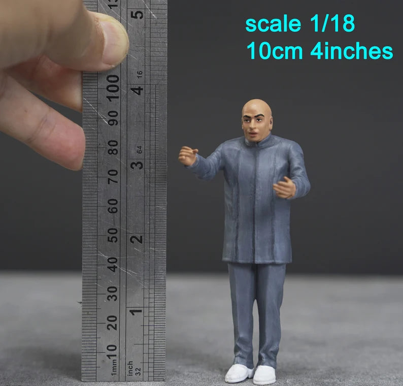 Scale is 1:18, height 10 cm (3.93 inches) when he stood up straight
