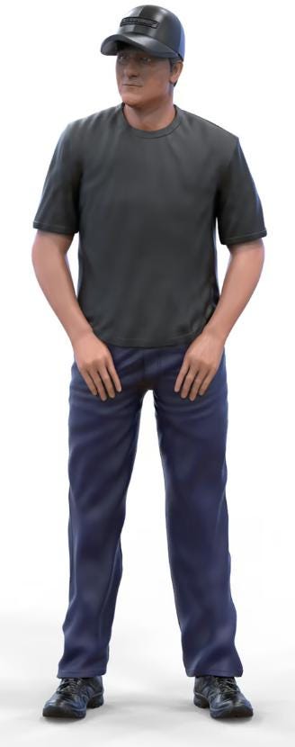 Scale is 1:64, height 2.8 cm (1.1 inches) when he stood up straight