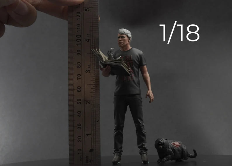 Scale is 1:18, height 10 cm (3.93 inches) when he stood up straight