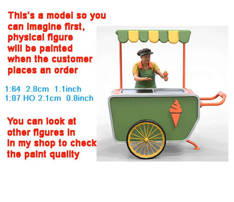 Ice cream cart girl figure handpaint high detail 1:18 to HO scale