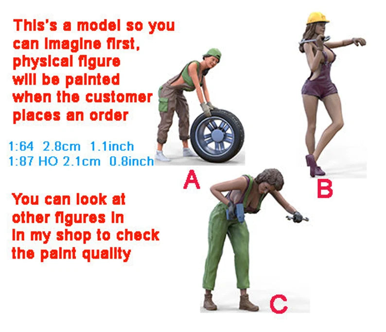 Mechanic girl figure HO 1:64 Scale handpaint high detail