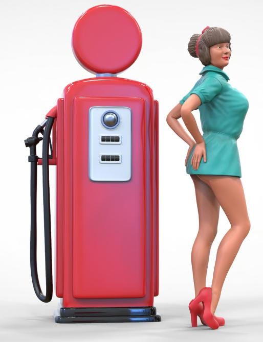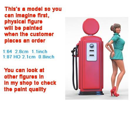 Pin up girl with Gas figure handpaint high detail 1:18 to HO scale