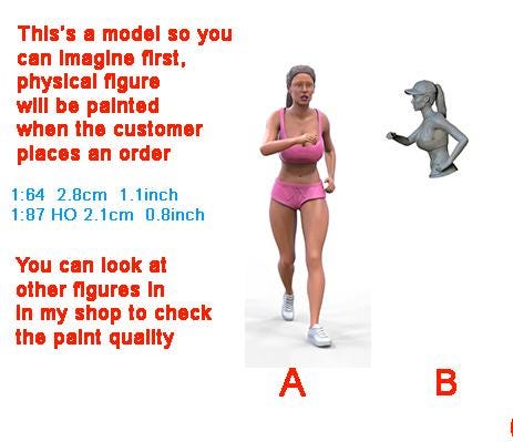 Running woman figure 1:18 to 1/64 HO scale handpaint high detail