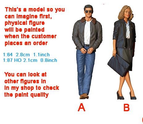 Tom and Kelly Gun figure 1:18 to 1/64 HO scale handpaint high detail
